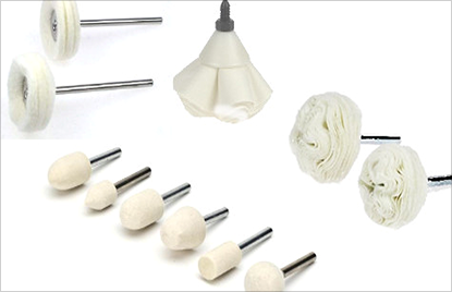 Polishing cup buffs and felt bobs for polishing at difficult-to-reach areas